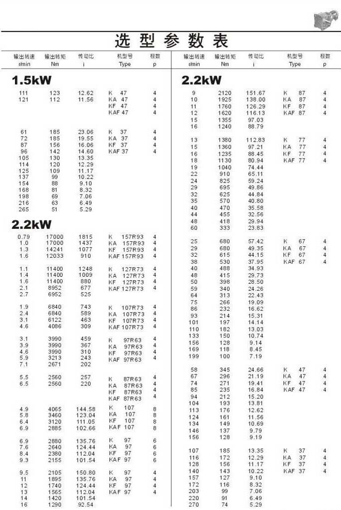 選型參數表1.5kW(續)和2.2kW