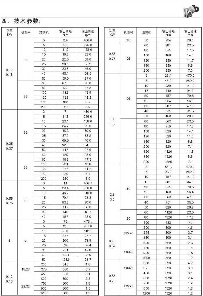G系列全封閉齒輪減速機技術參數