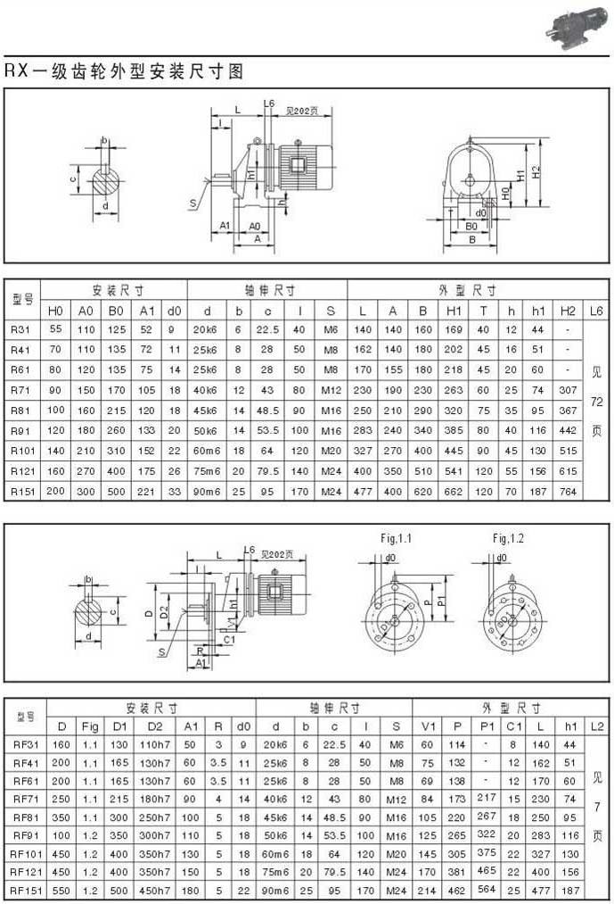RX一級齒輪外型安裝尺寸圖表